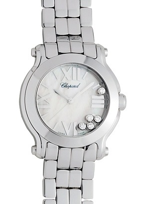 ショパール 27/8475-3016 レディース ハッピースポーツ マークII ラウンド SS 白文字盤/3Pダイヤモンド クォーツ ラバー