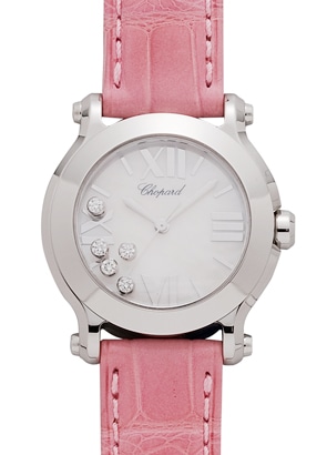 ショパール - レディース ハッピースポーツ マークIIラウンド | CHOPARD | 27/8509-3004 | SS 白シェル文字盤/5Pダイヤモンド クォーツ レザー(ピンク)