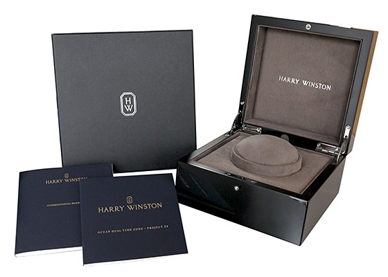 ユニークな機構と先進性でハリーウィンストンの時計を世に知らしめた「プロジェクトZ」シリーズ 2014年に発表された「プロジェクトZ8」はシリーズ8作目となる、世界300本限定モデル。 ケースに使われているザリウムは、ジルコニウムを主成分とした合金で、チタンよりも硬く耐蝕性に優れている上に軽量である先端素材です。 レトログラードが使われたデュアルタイム表示が特徴のこのモデルは、レトログラードの第二時間帯部分を赤、右上のサークル部分を青でカラーリング。 これによって直感的に2つのタイムゾーンを視認することができます。 また、リューズによるクラッチ連結遮断機能を搭載。これによってレトログラードを両方向に回転することが可能となり、時差修正を瞬時に行うことが出来ます。 こちらは2015年1月に販売されたお品で、オーバーホールと外装の傷取り(研磨)済みですが1時位置ラグ裏と9時位置ベゼル裏エッジに打痕と、全体的に細かい打痕がございます。詳しくは画像をご覧ください。 詳しい内容を確認されたい方はお気軽にお問い合せ下さい。 ※生産終了モデル、参考定価 2,538,000円(税込)