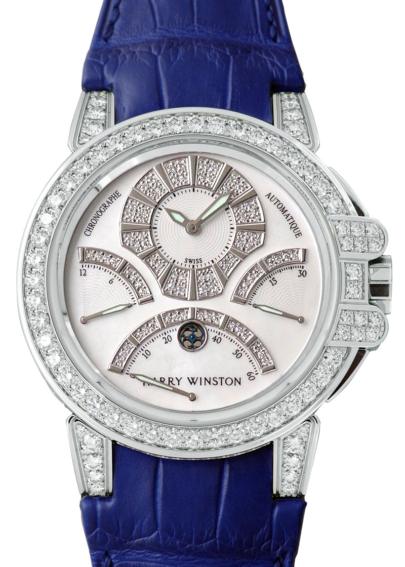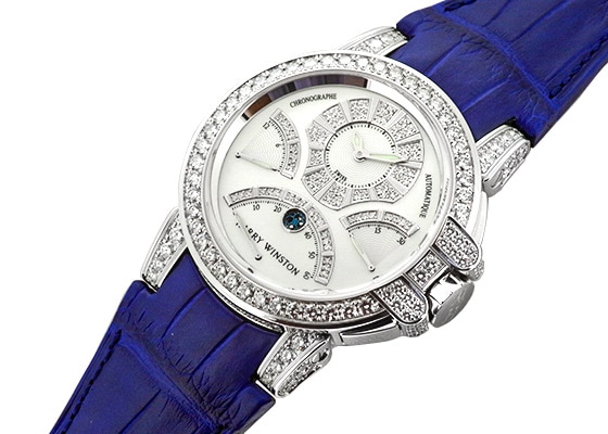生産終了してもなお抜群の人気を誇る「トリレトロ クロノグラフ」が入荷いたしました。 オーデマピゲ、ブランパンなどにも使用され、自動巻きクロノグラフの高級ムーブメントとして知られる、フレデリックピゲ製のコラムホイール式クロノグラフムーブメントを搭載。 ケースと文字盤に使用されたダイヤモンドは総6.65ct、シェル文字盤との相性も抜群、内外ともにハリーウィンストンの贅が盛り込まれた最高級モデルといっても過言ではないでしょう。 2019年にハリーウィンストンにてオーバーホール、リューズ交換、外装の傷取り(研磨)を実施後、当店にて販売したお品です。 その後は丁寧にご使用になられたいたこともあり、現状も変わらずとても綺麗な状態です。 ストラップも新品交換済みで新品と見間違うほど抜群のコンディションです。 保証書の日付は2008年6月、付属品は全て揃っており、別途メーカー修理明細書が付帯いたします。 さらに詳しい内容を確認されたい方はお気軽にお問い合せ下さい。 ※生産終了品 参考定価 11,605,000円(税込)