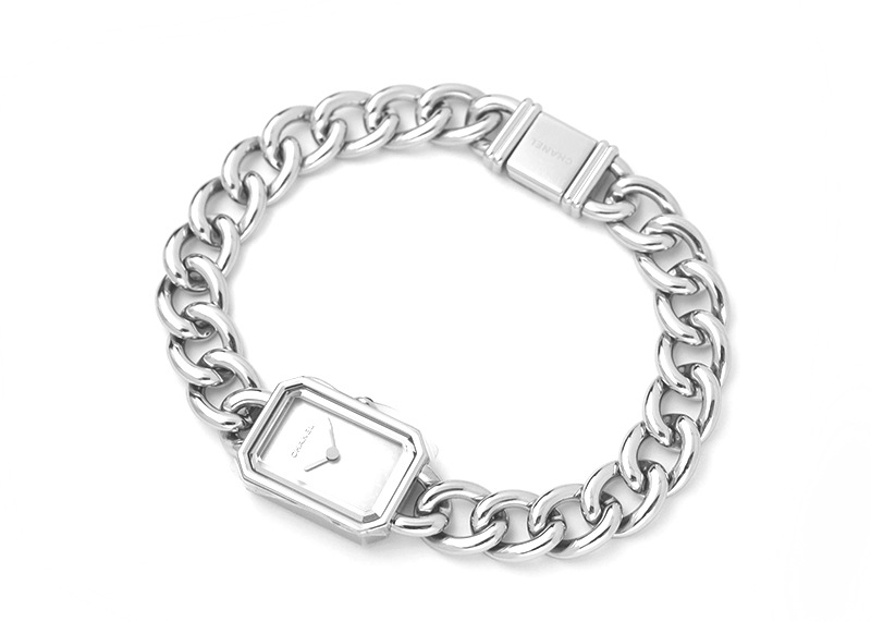 シャネルのプルミールの未使用品が入荷をしました。 プルミエールは1987年に登場したシャネルが初めて手掛けたウォッチです。 シャネルブティックのあるパリのヴァンドーム広場をモチーフに、8角形のケースがデザインされた、シャネルを象徴する時計です。 シェル文字盤とシンプルな2針の針、カボションにはオニキスを使用しており、都会的で洗練された雰囲気を感じさせるデザインとなっております。 アクセサリー感覚でもご使用ができるこちらの時計は、大きさは縦が22ミリ、横が16ミリと小振りなサイズです。 極めてシンプルなデザインながら、エレガンスを感じさせるモデルとなっております。 箱、保証書が付属をして、日付は2019年9月です。 ケースのサイド、バックル部分には保護フィルムが貼られた状態で、腕周りは約18センチの方まで対応します。 さらに詳しい内容を確認されたい方は、お気軽にお問い合わせください。 生産終了モデル 参考定価 687,500円(税込)