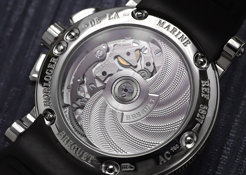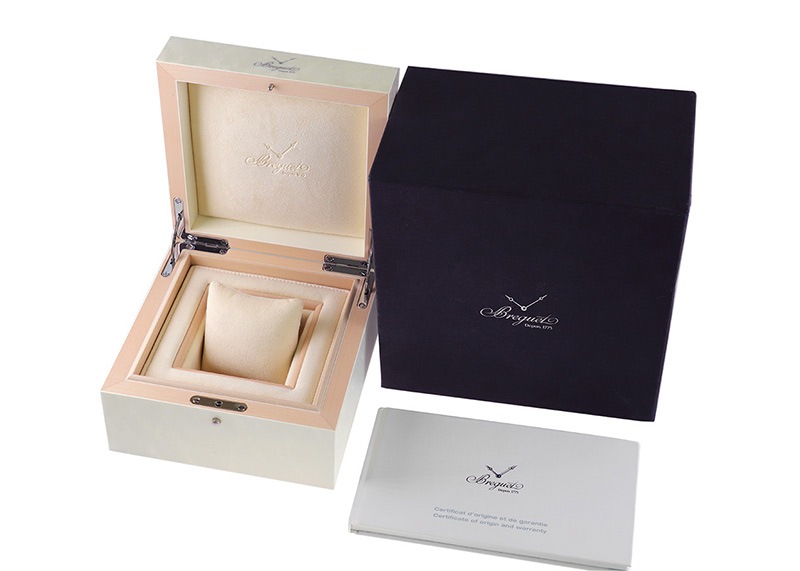 「マリーン」コレクションは、ブレゲがフランス海軍のために製作したマリン・クロノメーター(航海用精密時計)をもとに作られた現代の精密時計です。 ミドルケースのコインエッジ、文字盤のギョーシェ彫りなど、ブレゲらしい高級感と伝統を感じる時計となっています。 ムーブメントの点検が完了しています。 外観の傷取り(研磨)を行っていますが、小傷がみられますのでご了承ください。 ストラップはブレゲ純正の新品ラバーベルトを取り付けています。 箱、保証書が付属をして、2011年11月に国内正規店で販売がされた商品です。 さらに詳しい内容を確認されたい方は、お気軽にお問い合わせください。 ※生産終了品 参考定価 3,861,000円(税込)