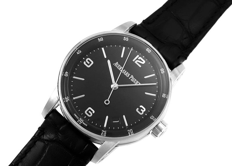 2019年発表モデル CODE 11.59 中古品が入荷いたしました。 モデル名の由来は C=挑戦、O=伝統・歴史、D=理念、E=進化、そして11.59は新しい一日が始まる直前を意味し、新たな一日を創造するたゆまぬ進化と情熱が込められています。 サファイアガラスは、中心を軸に12-6時方向にアーチ型の表面と、ドーム状の裏面で形成されており、異なる二つの曲線が今までにない視覚を生みだしています。 オープンワークのラグから覗くロイヤルオークを踏襲した八角形のミドルケースと、ロイヤルオーク仕様のラグネジはオーデマピゲの理念でもある伝統の継承です。 7年の開発期間を経て、完成したオーデマ ピゲの新基幹ムーブメント 自動巻ムーブメントCal.4302を搭載し、パワーリザーブは約70時間です。 内外ともに挑戦と進化を感じさせる意欲的作品の 「CODE 11.59」、見れば見るほど魅せられてしまうこと間違いありません。 オーデマピゲジャパンで機械点検をおこない問題はなく、ストラップは純正新品のアリゲーターベルトを取り付けています。 ケースは外観の傷取り(研磨)をおこなっています。 箱、保証書(カードタイプ)が付属します。 さらに詳しい内容を確認されたい方はお気軽にお問い合せ下さい。 ※生産終了モデル 参考定価 4,070,000円(税込) 管理用:owi376