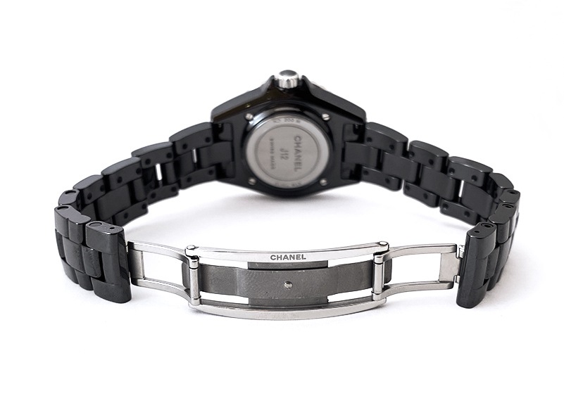 発表当初から変わらぬ人気を誇るシャネル「J12」ブラックセラミック33mmが入荷いたしました。 2000年にシャネル初のスポーツウォッチとして発表された「J12」は、シャネルの目と呼ばれたデザイナー、ジャック・エリュ氏によって生み出された革新的な時計。 代名詞とも言えるハイセラミック製のケースは、光の反射や角度によって違う表情を見せてくれる、他にはない魅力を持っています。 また、非常に軽量・硬質で傷に強く、ラグジュアリーな外観にも関わらずタフなに日常使いしていただける時計です。 J12は20周年にあたる2019年に全面リニューアル。今回入荷したのは、リニューアル後の33mmサイズ・クオーツモデルです。 ベゼルが僅かに細くなり、外周の刻みが増えたことでよりスタイリッシュに。 また、その分文字盤が大きくなったことで 視認性が向上しています。 33mmはレディースとしては大き目で存在感抜群。 大きいことで生まれるぶつける・傷がつくという不安は ハイセラミックのJ12においては必要ありません。 また200mの防水性能を備え、水仕事での心配も不要。 まさに ハイセンスかつ 仕事にプライベートにアクティブに毎日を過ごす女性にふさわしい時計です。 商品状態は 裏蓋に僅かな使用傷がございますが、全体に綺麗な状態で、ブレスレットはフル駒です。 2022年5月に国内販売された新しい個体で、付属品は箱、国内正規保証書(2022年5月)がございます。 さらに詳しい内容を確認されたい方は、お気軽にお問い合せ下さい。 管理用:owl023