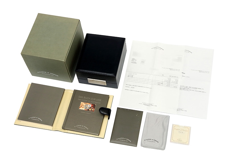 ドイツが誇る名門マニュファクチュール、A.ランゲ&ゾーネより、代表モデル 「ランゲ1」が入荷しました。 世界5大ブランドの一つに数えられるA.ランゲ&ゾーネは、ドイツ グラスヒュッテに工房を持つ 戦前から続く老舗ブランド。 あらゆるパーツに施された手作業による装飾など、その高い芸術性と技術の融合で唯一無二の時計を生み出してきました。 冷戦により休眠に追い込まれたランゲ&ゾーネを再興するにあたり、最初に生み出されたのがランゲ1です。 特徴はアシンメトリーに配置されたダイヤルや、通常の約3倍の大きさで視認性の高さを誇るアウトサイズデイト。 配置やデイトのバランスをはじめ、黄金比率を用いて設計されたデザインは現行品まで変わらず、当時からいかに完璧な設計かが伺えます。 裏面から覗く洋銀製3/4プレートや見事な装飾の施されたテンプ受けも伝統的で、随一の美しさを誇ります。 搭載される美しいムーブメントは手巻きCal.L901.0 「DOPPELFEDERHAUS」の字が示す通り 香箱2つのツインバレル、パワーリザーブは約72時間です。 ケース径は現行品と同じ38.5mm。フォーマルなスーツ姿も引き立てる上品で収まりのいい大きさです。 商品状態は ランゲ&ゾーネにてコンプリートサービス、リファビッシュ(研磨)、ガラス(表、裏)交換済みです。 ストラップはA.ランゲ&ゾーネ純正、新品のクロコダイル製です。留め具は片開きのDバックル仕様。 付属品は、箱、保証書(2009年6月)、メーカー修理明細書(2023年7月より 2年保証)がございます。 USED品は個体により状態が異なりますので、さらに詳しい内容を確認されたい方は お気軽にお問い合せ下さい。 管理用:owm089