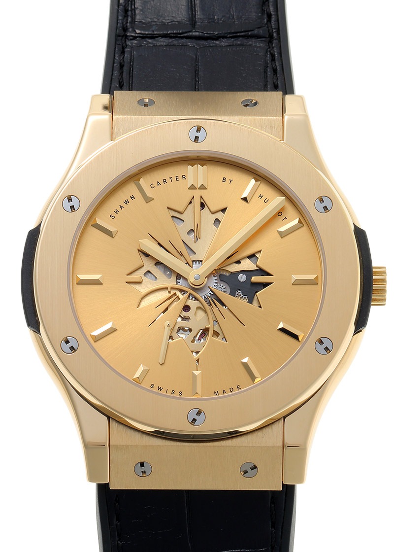 ウブロより、人気シリーズ 「クラシックフュージョン ウルトラシン」の限定モデルが入荷しました。 ジェイ・Zことショーン・コーリー・カーターとのコラボレーションモデル。 アメリカを代表するミュージシャンで、文字盤にある星形エンブレムはショーン・カーターコレクションのモチーフです。 比較的大きな45mmケースは存在感がありますが、かなり厚みが抑えられているモデルです。 ストラップは高級感あるアリゲーターの見た目ながら裏面にラバーを裏打ちし、汗など湿気に耐性を持たせたラバーアリゲーターで実用性も抜群です。 提携工房にて機械点検、外観の傷取り(研磨)を行っています。 ストラップは多少の使用感が見られますが、まだまだ十分にお使いいただけます。 ショーン・カーター専用の箱が付属します。 当時の参考定価は3,110,000円(税別)です。 さらに詳しい内容を確認されたい方は、お気軽にお問い合せ下さい。 管理用:own175