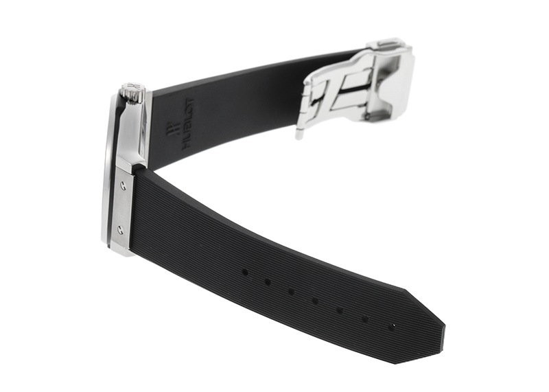 「クラシックフュージョン ブラックシャイニー」が入荷をしました。日本限定のモデルです。 定番の黒文字盤とは異なり、オニキスのようなツヤ感のある「ブラックラッカーダイヤル」を採用。 シンプルで落ち着いた雰囲気にツヤ感がプラスされ、よりラグジュアリースポーツを演出しています。 シンプルな3針とカレンダー、しなやかなラバーベルトはビジネスでもお使いいただけます。 42mmのケースサイズは腕なじみが良く、袖口に引っかかりにくいのも嬉しいポイント。 ムーブメントはHUB1110を搭載し、パワーリザーブは42時間。 自動巻きのムーブメントは分解掃除(オーバーホール)、外観の傷取り(研磨)が完了しております。 ストラップは保証書のモデル番号を参照するとラバーアリゲーターの仕様ですが、 純正新品のラバーベルトを取り付けています。 正規販売店で2014年に販売がされた商品で、国際保証書が付属します。 別途、携帯ケースをお付けします。 さらに詳しい内容を確認されたい方はお気軽にお問い合せ下さい。 管理用:own296