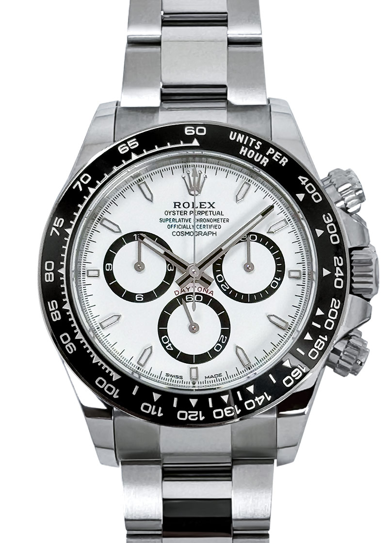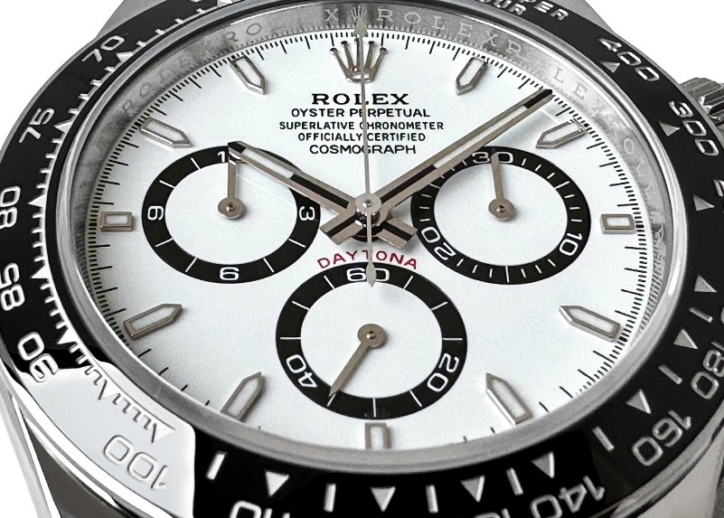 デイトナ誕生から60周年を迎えた2023年 モデルチェンジにより大きな反響を呼んだ「コスモグラフ デイトナ」のSSモデルが入荷いたしました。 第七世代となる新型番は「126500LN」 ムーブメントはCal.4130から、性能向上を図りつつもパーツ数の減少に成功させたCal.4131にアップデートしています。 外装は、セラクロムベゼルをケースと同一素材による枠で縁取り。 文字盤に於いてもインダイアルの縁と、インデックスを細くしたことで、全体的にすっきりとした印象です。 また、12.2mmから11.9mmに薄くなったケースと、ラグの形状が改良されたことで、腕なじみの向上を図っています。 管理用:owp373ロレックス - オイスターパーペチュアル コスモグラフ デイトナ | ROLEX | 126500LN | SS 白文字盤 自動巻き ブレスレット- 商品コード