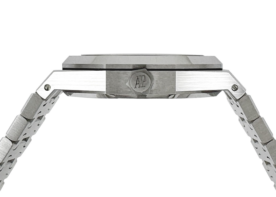 名門マニュファクチュール オーデマ・ピゲより、「ロイヤルオーク 15500」が入荷しました。 誕生以来一度も創業家族の手を離れたことのない最も歴史の長い時計メーカーのオーデマ・ピゲ。 代表作であり1972年の発表以来人気を保ち続けているロイヤルオークは、ジェラルドジェンダ氏のデザインで現在人気の「ラグジュアリースポーツ」を確立したといわれています。 八角形のベゼルと8つのビス、文字盤のグランドタペストリー模様、ケース・ラグ一体型のブレスレットが大きな特徴です。 15300・15400に搭載されていたCal.3120からCal.4302に変更、振動数が上がったことで精度が安定し、パワーリザーブも約70時間に向上しました。 デザインのマイナーチェンジにおいては、インデックスが太く短くなり、6時位置のautomatic表記を廃止、美しいタペストリー模様がより広くなり、存在感が増しました。 インデックスの外側に分を示すミニッツマーカーを設けることで、タペストリー模様を邪魔せず 視認性も確保されています。 商品状態は、オーデンピゲにてコンプリートサービスを実施済み。 取り切れないキズが僅かに見られますが、概ね綺麗な個体です。 ブレスレットはフル駒で、付属品は箱・保証書(2021年11月)がございます。 2026年11月までの延長保証済みですので、ご安心してご使用いただけます。 さらに詳しい内容を確認されたい方は、お気軽にお問い合せ下さい。 管理用:owp273