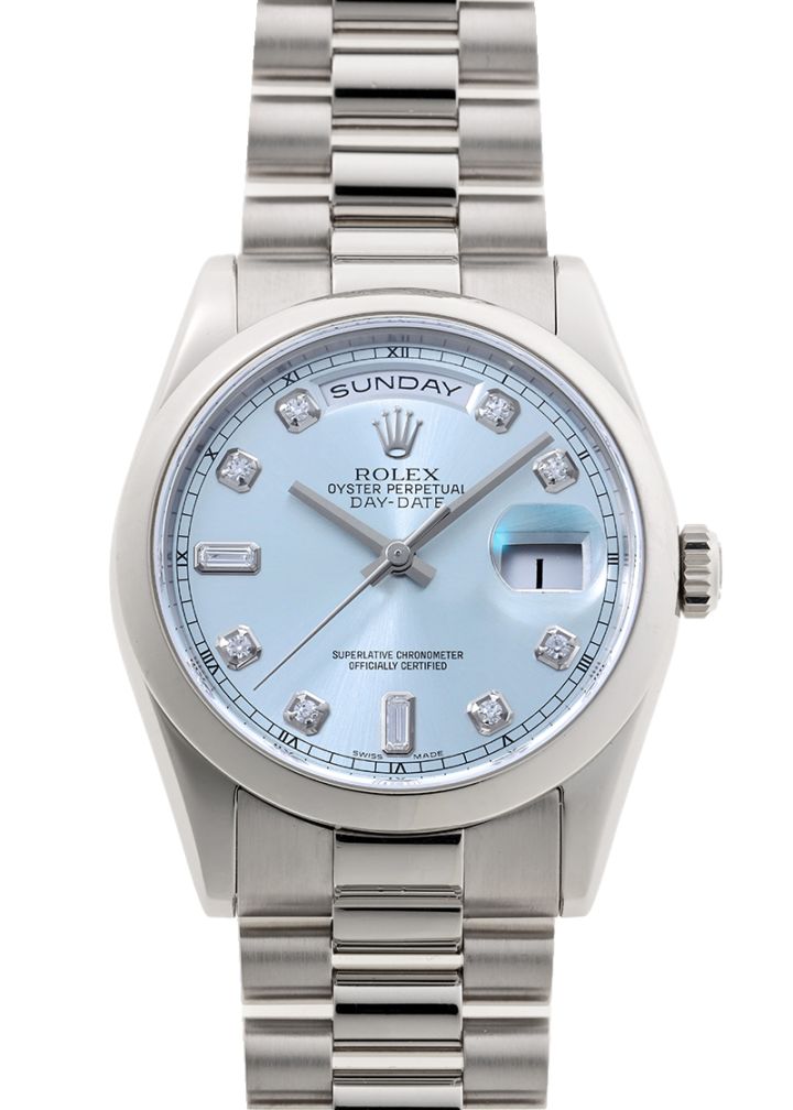 ロレックス - オイスター パーペチュアル デイデイト | ROLEX | 118206A | PT アイスブルー文字盤 自動巻き ブレスレット | 中古