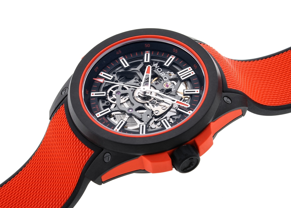 【期間限定特価】ノルケイン - インディペンデンス ワイルド ワン オレンジ | NORQAIN | NNQ3000QBR2AS/B013/3W1RBR1.20BQ | カーボン スケルトン文字盤 自動巻き ラバー | 未使用品