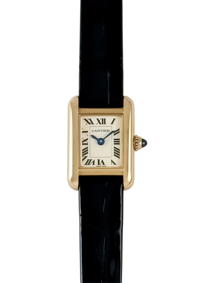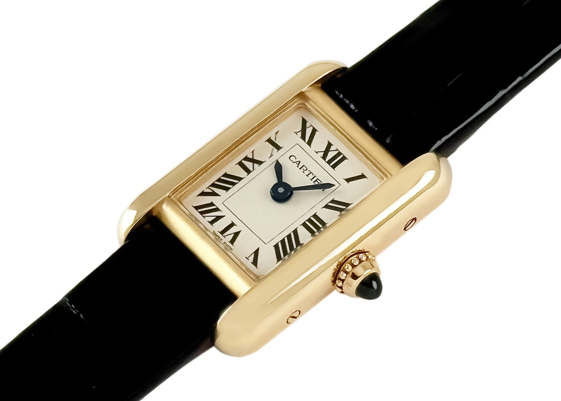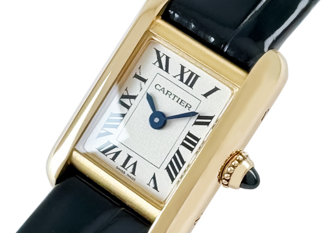 カルティエより人気シリーズ「タンク ルイ カルティエ」のミニサイズが入荷しました。 一番最初に腕時計を作ったカルティエが、タンクシリーズを初めてデザインしたのが1916年。 戦車を上から見た様子にインスピレーションを受けたタンクは、ラグと一体化した並行に伸びる縦枠が特徴の カルティエを代表するシリーズです。 当該商品は初代タンクの特徴を色濃く受け継ぐタンク ルイ カルティエ。 2024年発表、コレクション初のミニサイズです。 ローマ数字やブルースティールの針、サファイアがあしらわれたリューズなど、タンク ルイ カルティエの基本的なデザインコードは変わらず踏襲。 唯一現行モデルとのデザインの大きな違いは、レイルウェイトラックの目盛りがないことです。 ミニッツマーカーの代わりに細い線が引かれ、限られた文字盤の余白を邪魔しないようにデザインされています。 またミニサイズは、レディースウォッチとしてだけでなく、タンク ルイ カルティエを選ぶ全ての人のためにミニという選択肢を増やしたモデルです。 実際カルティエはこのミニサイズを男性の着用画像と共に広告を打ち出しています。 小振りな時計のトレンドが生み出したカルティエの自信作は、誰もが自由にサイズを選択できることを示唆しています。 商品状態は、当店にて点検と簡易仕上げ(ライトポリッシュ)を施しており、万全の状態です。 付属品は、箱・保証書(2024年12月)がございます。 さらに詳しい内容を確認されたい方は、お気軽にお問い合せ下さい。 管理用:owq003