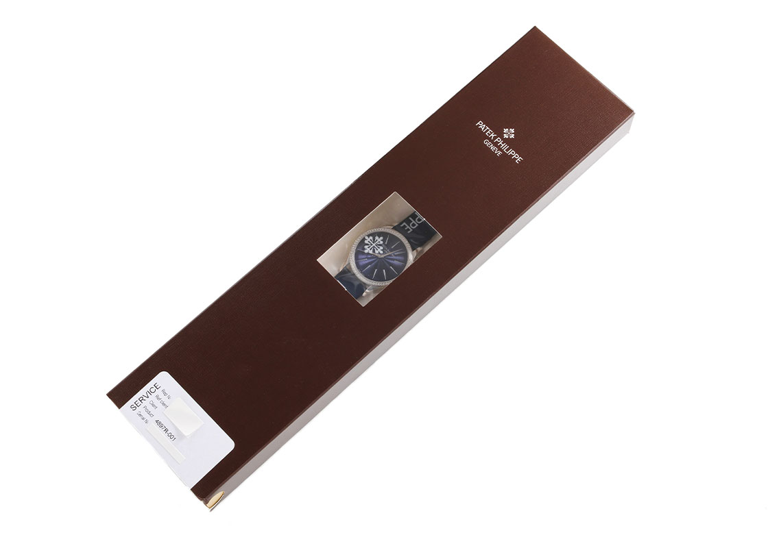 名門マニュファクチュールのパテックフィリップより「カラトラバ ベゼルダイヤ」が入荷しました。 カラトラバはパテックフィリップを代表するラウンドモデル。 1930年代から登場をして数々のドレスウォッチを発表しています。 最後に行き着く時計ともいわれています。 こちらはレディスサイズでケース径は33mm、ベゼルには72個(約0.47カラット)のダイヤモンドがセッティングされています。 上品なギョーシェ彫りのブルー文字盤には鋭く尖った、バーインデックスと針が存在感を放ちます。 提携工房にて外観の傷取り(研磨)、ロジウムメッキ後に、パテックフィリップジャパンにてオーバーホール(機械の分解掃除)とガラス交換を行っております。 さらにパテックフィリップ純正サテンベルトも新品に交換済みです。 パテックフィリップの箱(内箱のみ)と保証書(2017年9月販売)、修理明細書、携帯ケースが付属いたします。 最高の状態でお客様へお渡しするため、メンテナンス後は未開封の状態となっております。 新しく生まれ変わった特別な時計を手にできるのは、ご購入された方のみです。 パテックフィリップ社でメンテナンスをすることで、「他には無い高品質のタイムピース」が出来上がり、初めて手にされる方も安心してお使い頂けます。 世界最高峰ブランドの「メンテナンス後ファーストオーナー」になってみてはいかがですか。 さらに詳しい内容を確認されたい方は、お気軽にお問い合せください。 管理用:owq108
