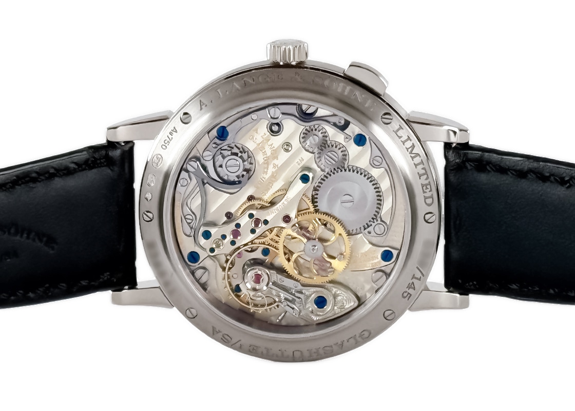ドイツの至宝 A.ランゲ&ゾーネより「1815 ウォルターランゲへのオマージュ 145本限定」が入荷しました。 A.ランゲ&ゾーネ再興の祖、ウォルター・ランゲ氏(1924–2017)の偉大な功績を称え、2017年に発表された追悼モデルが「1815 ウォルター・ランゲへのオマージュ」です。 限定数145本は、創業者アドルフ・ランゲが工房を設立した1845年から、ウォルター・ランゲ氏がブランドを復興した1990年までの年月を象徴しています。 本作の大きな特徴は、ランゲ家に脈々と受け継がれてきたジャンピングセコンド機構。 1877年にアドルフ・ランゲが取得したドイツ初期の特許のひとつでもあり、ウォルター・ランゲ氏が晩年に情熱を注いだ機構を、腕時計として結実させています。 2時位置のプッシュボタンで、センター秒針のスタート/ストップが可能というユニークな仕様を備えています。 ホワイトゴールドケースのシンプルで端正な佇まいの中に、クロノグラフ機構を応用した高度な複雑機構を搭載。ケースバックからは、緻密な装飾を施されたムーブメント Cal.L1924(ウォルター・ランゲ氏の生年に由来)が鑑賞でき、約60時間のパワーリザーブを備えています。 また、リファレンス番号「297」は、7月29日の氏の誕生日にちなむもの。A.ランゲ&ゾーネの歴史と精神を凝縮した、唯一無二のメモリアルピースです。 商品状態は、A.ランゲ&ゾーネにてコンプリートサービス、表裏のガラス交換、外装仕上げ(リファビッシュ)済みです。 ストラップもメーカー純正の新品に交換済みです。 付属品は、箱・保証書(2019年4月)・修理明細書(2027年9月まで保証)がございます。 さらに詳しい内容を確認されたい方は、お気軽にお問い合せ下さい。 管理用:owp582