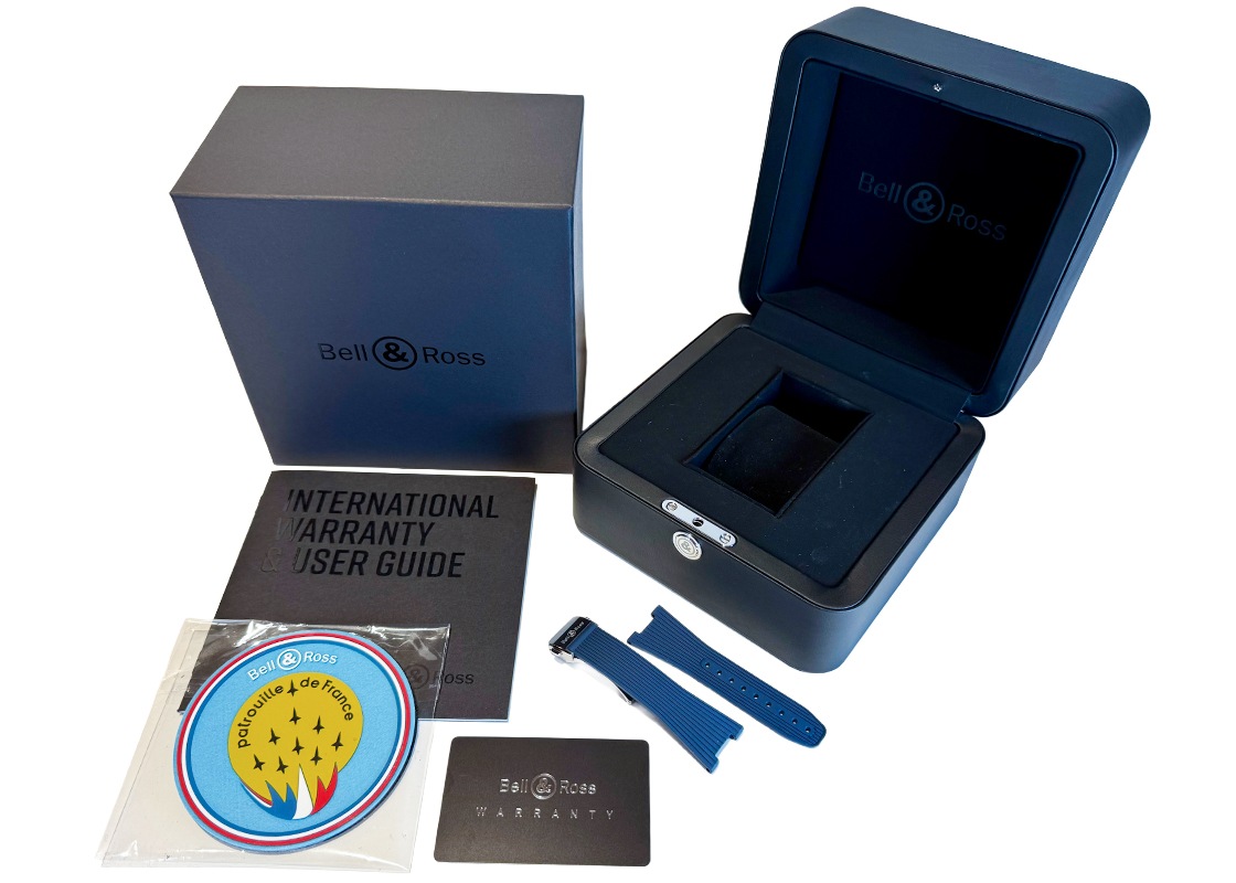 ベル&ロス BR-05シリーズの新たな限定モデル「BR-05 CHRONO PATROUILLE DE FRANCE」が入荷しました。 フランス・パリで創業し「プロフェッショナルのための時計」を掲げるベル&ロス。 スイスに生産拠点を構え、視認性・機能性・高精度・信頼性という4つの原則を軸に、都市的で洗練されたデザインを追求しています。 2021年にフランス航空宇宙軍のアクロバット飛行チーム「パトルイユ・ド・フランス」と公式パートナーシップを締結して以降、ベル&ロスは特別モデルを次々と発表 そして今回、待望の第4弾となる「BR 05 CHRONO PATROUILLE DE FRANCE」が登場しました。 “サニーブルー”と名付けられたサンバースト仕上げの文字盤は、飛行服を思わせるカラー。 フランジとサブダイヤルには航空機を象徴するディープブルーを採用し、チームのスピリットを見事に体現しています。 6時位置にはダイヤモンド隊形を組む飛行隊エンブレムを配置し、クロノグラフ秒針には象徴的なアルファジェットのシルエットをデザイン。 随所にエリート部隊への敬意と情熱が込められた一本です。 ムーブメントにはCal.BR-CAL.326(自動巻)を搭載し、約60時間のパワーリザーブと100m防水性能を備え、日常からアクティブシーンまで幅広く活躍します。 商品状態は、入荷後に当店にて簡易仕上げを実施しており全体的にとても綺麗な状態です。 付属品は箱・保証書(2025年3月)。 別売りでお求めになられた、未使用のDバックル付きラバーストラップも付属いたします。 さらに内容を確認されたい方は、お気軽にお問合せください。 管理用:ii-634