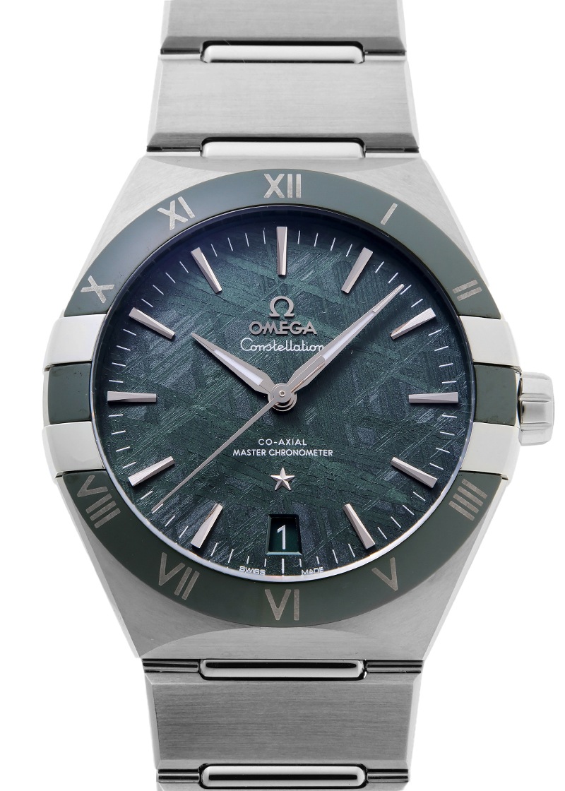 オメガより「コンステレーション」の新品が入荷いたしました。 1952年の誕生以来、精度とデザインの両立を象徴するシリーズとして愛され続けるコンステレーション。 こちらは2024年に登場したモデルで、ケース径41mmの存在感あるサイズに、グリーンのコーティングが施された鉄隕石(アイアン メテオライト)のダイヤルを組み合わせています。 素材の希少性に加え、一つとして同じ模様のない、唯一無二の文字盤です。 ベゼルにはコンステレーションを象徴する3時9時位置の爪デザインが施され、伝統とモダンな感性が見事に融合しています。 搭載されるのはオメガの自社製コーアクシャル マスター クロノメーター「キャリバー8900」。 約60時間のパワーリザーブを備え、15,000ガウスの耐磁性能を誇るなど、実用性と信頼性を極めたムーブメントです。 都会的な雰囲気をまとった洗練のデザインは、ビジネスシーンからオフスタイルまで幅広く活躍。 飾らない上質さを求める方にこそふさわしい一本です。 ブレスレットは腕周り約18.5cmの方まで対応いたします。 さらに詳しい内容を確認されたい方は、お気軽にお問い合わせください。 管理用:owp821