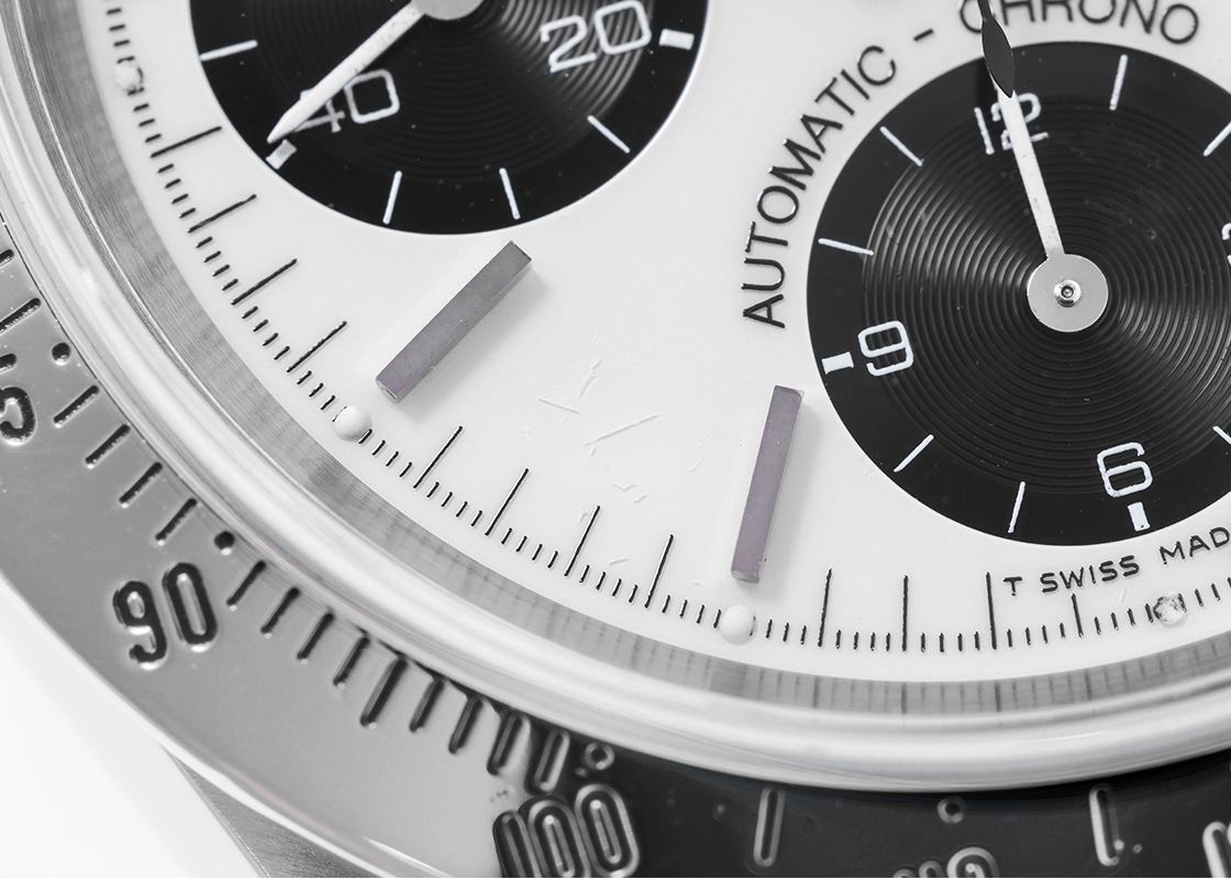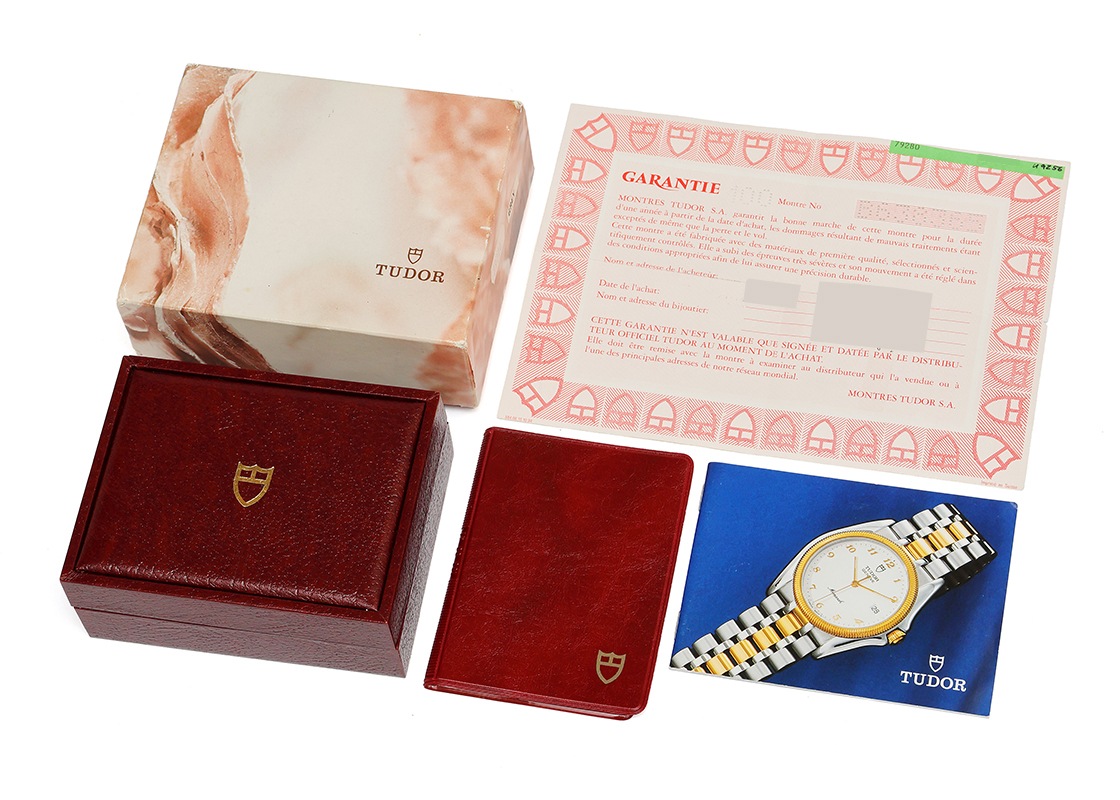 チューダーより「クロノタイム オイスター デイト」が入荷いたしました。 クロノタイムは、1970年代から2000年代前半にかけて製造されたチューダーの代表的クロノグラフ。 ロレックス譲りの堅牢な設計と、チューダーらしい個性あるデザインが融合した、今なお高い人気を誇るシリーズです。 こちらのモデルは、クロノタイムの第3世代にあたり1995年に登場した最終モデルです。 中でもステンレススティール製のベゼルにタキメーターを備えた本モデルは、特に人気の高いモデルです。 視認性に優れたクロノグラフ配置、白地に黒のインダイヤル(通称パンダダイヤル)、そしてヘアラインとポリッシュを巧みに組み合わせたケースが、スポーティかつ端正な雰囲気をまとわせています。 リューズにはロレックスの王冠マークが付いており、これはかつてロレックスがパーツを供給していたものであり、チューダーというブランドの歴史を感じることのできる魅力の一つです。 搭載されるムーブメントは、ETA社製 Cal.バルジュー7750で、パワーリザーブは約44時間。 信頼性・整備性に優れ、しっかりとした操作感も含め、機械式クロノグラフらしい満足感を味わえる仕様です。 提携工房にてオーバーホール(機械の分解掃除)と外観の傷取り(研磨)が完了しております。 文字盤の7時位置の僅かな傷と、6時と9時の夜光塗料に剥がれが見られますが、視認性に大きな問題は無い程度です。 ブレスレットは腕周り約18.5cmの方まで対応します。 チューダーの箱と保証書(1998年7月販売)が付属いたします。 生産終了から年月を経た今も色褪せない、チューダークロノの“らしさ”を堪能できる一本です。 さらに詳しい内容を確認されたい方は、お気軽にお問い合わせください。 管理用:owq317