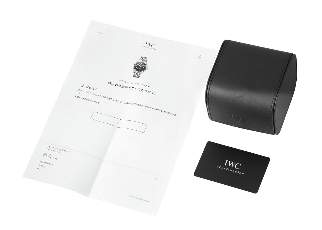 名門IWCシャフハウゼンより、パイロットウォッチの真髄を体現する「マークXX」が入荷しました。 1948年に英国空軍(RAF)の要請で誕生したマークXIを起点とするマークシリーズは、70年以上にわたり「究極の視認性と信頼性」を追求してきたミリタリーパイロットウォッチの金字塔です。 本作マークXXは、その伝統を受け継ぎつつ現代的にアップデートされた完成形といえる一本です。 前作マークXVIIIと同径の40mmケースながら、ラグからラグまでの長さを約2mm短縮することで装着感は一段と向上。 ケース厚も10.8mmへと薄型化され、ミリタリー由来の無骨さを残しつつ、シャツの袖口にもスマートに収まるバランスの取れたプロポーションとなっています。 軍用計器らしい潔いデザインと、現代的な洗練が見事に融合しています。 ムーブメントには、シリーズ初の自社製キャリバー32111を搭載。 IWCがグループ内のノウハウを結集して開発した最新世代の双方向巻き上げ自動巻きムーブメントで、約120時間(5日間)のパワーリザーブを実現し、週末外しても月曜から問題なく稼働します。 さらに防水性能は前作の60mから100mへと強化。 ブレスレットには工具不要で付け替えができるEasX-CHANGEシステムと、微調整可能なクラスプを採用しており、利便性も飛躍的に向上しています。 「軍用時計の系譜を引き継ぎながら、現代的に洗練された完成度を誇るマークXX」。 コレクションの中核としても、日常の相棒としてもふさわしい一本です。 こちらは国内の正規店にて2023年9月に販売がされた商品で、IWCの保証書が付属します。 延長保証の登録が完了しており、2031年9月下旬までIWCの保証が有効でよりご安心いただけます。 IWCの携帯ケースが付属します。 提携工房にて外観の傷取り(研磨)を実施済みです。 研磨はケースの外観を損なわないよう最低限の実施で、右上のラグと裏蓋に取り切れない傷がございます。 ブレスレットは腕周り約17cmの方まで対応します。 さらに詳しい内容を確認されたい方は、お気軽にお問い合せください。 管理用:owq339