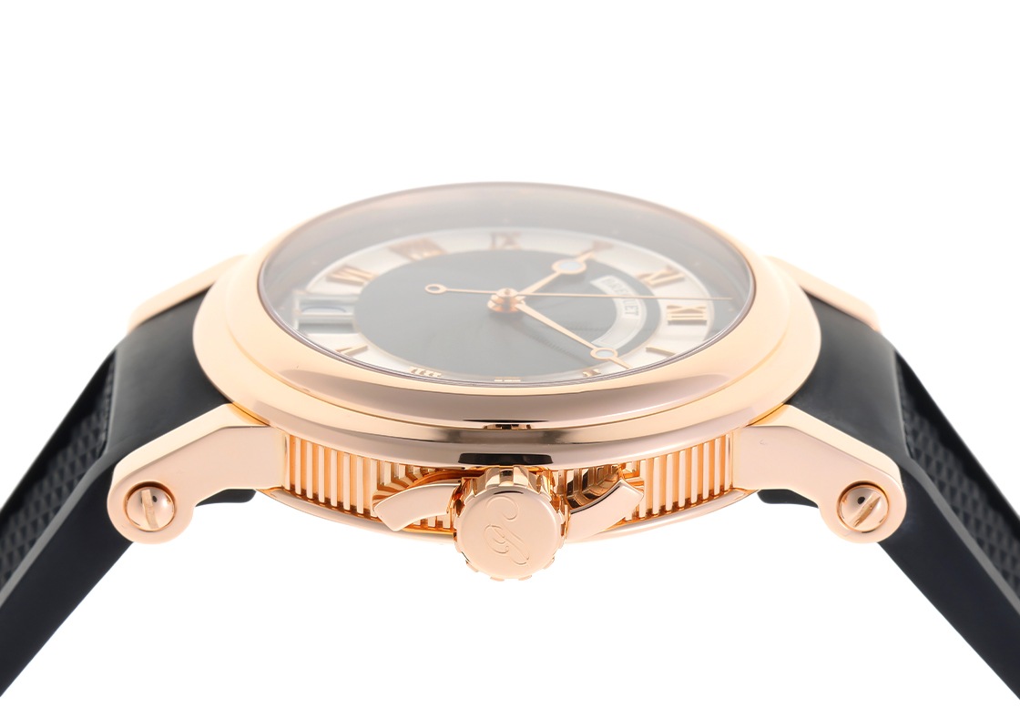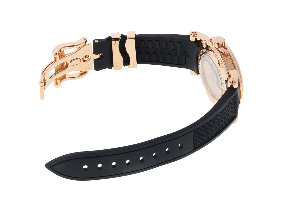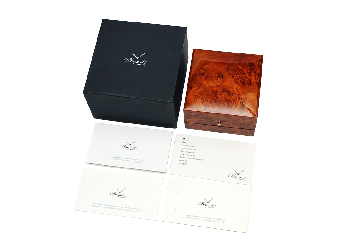 天才時計師による老舗ブランド ブレゲより 「マリーンII ラージデイト」が入荷しました。 時計の歴史を200年早めたといわれる天才時計師ブレゲ。 様々な新機構・複雑機構や独自性の高いエレガントなデザインは王侯貴族をも虜にしてきました。 デザインとしては古くからクラシカルでエレガントな王道のドレスウォッチで名を馳せたブレゲが、初めて”スポーツモデル”に踏み込んだのがマリーンシリーズです。 今回入荷したのは、マリーンIIとして有名な第2世代シリーズ。生産終了となった今でも高い人気を誇ります。 マリーンシリーズにはブレゲの伝統的な意匠や技術がたくさん盛り込まれており、ブレゲが視認性を高めるために発明したギョーシェ彫りもその一つ。 針はもちろん伝統であり視認性にも優れたブレゲ針、ケースサイドのコインエッジも技術力を必要とするブレゲの伝統です。 スポーツモデルの特徴でもあるリュウズガードや文字盤のギョーシェ彫りは海の波をイメージしたもので、マリーンが “マリーンクロノメーター” を基に作られたことに由来します。 イエローゴールドとピンクゴールドのラインナップがありますが、文字盤色が異なり、イエローゴールドがシルバー文字盤なのに対しこちらはグレー文字盤。 落ち着いた色味で品が良く、マリーンのクラシックな美しさを引き立ててくれます。 提携工房にて機械の点検と外観の傷取り(研磨)をおこなっており、非常に綺麗な状態です。 ストラップはブレゲ純正の新品ラバーベルトへ交換しております。 ブレゲの箱と保証書(2017年3月販売)が付属します。 さらに詳しい内容を確認されたい方は、お気軽にお問い合せ下さい。 管理用:owq407