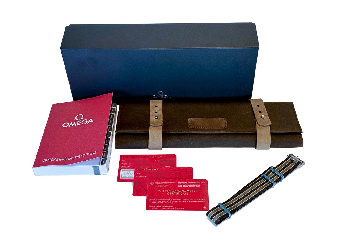 オメガより「シーマスター ダイバー300 コーアクシャル マスター クロノメーター 007エディション」が入荷しました。 オメガ「シーマスター」は、1995年から 映画007シリーズの中でジェームズ・ボンドが着用する時計として映画を盛り上げてきました。 MI6のスパイであり、元海軍将校であるボンドがミッションへ挑む際の欠かせないアイテムです。 今回入荷したモデルは2021年公開の映画「007 ノー・タイム・トゥ・ダイ」で実際にボンドが着用していたモデル。 通常、映画での着用モデルと市販モデルは仕様が若干異なることがほとんどですが、今回のモデルは劇中モデルそのままなのがポイント。 製作にあたっては主演俳優の意見が大いに取り入れられ、厳しいミッションやアクションの多いボンドの為に初めてのオールチタンのモデルとなりました。 使用されたグレード2チタンは、堅牢性・耐食性に優れ、極度の温度変化にも強く、そしてなにより軽いのが特徴。 そこに、アンティークな風合いを出すため、ドーム型風防・文字盤とベゼルにはアルミニウムが採用され、夜光塗料にはビンテージ調のスーパールミノバが使用されています。 機能面は最高水準の精度・機能性が保証されたマスター クロノメーター認定機。 自社製Cal.8806は、約55時間のパワーリザーブと 業界最高クラスの極めて高い耐磁性能を持ちます。 グレード2チタン製のブレスレットは特別なバックルにより調節が可能。 ダークブラウン/グレー/ベージュのシックなストライプに007刻印のバックルを使用したNATOベルトが付属し、よりスポーティにお使いいただけます。 商品状態は、ベゼルに僅かな小傷がございますが、その他は非常に綺麗な状態です。 付属品は箱・国内正規保証書(2022年6月)がございます。箱はこのモデルの為の特別仕様で、ミッションへ向かうボンドが持ち歩くにふさわしいレザーの専用ケースです。 さらに詳しい内容を確認されたい方は、お気軽にお問い合せ下さい。 管理用:owq680