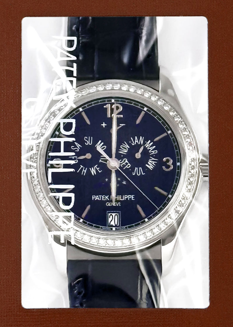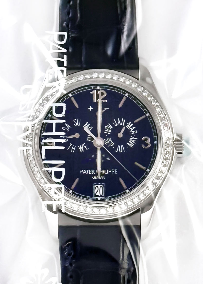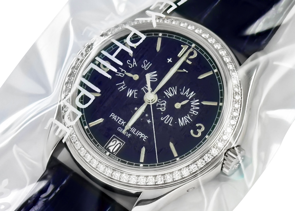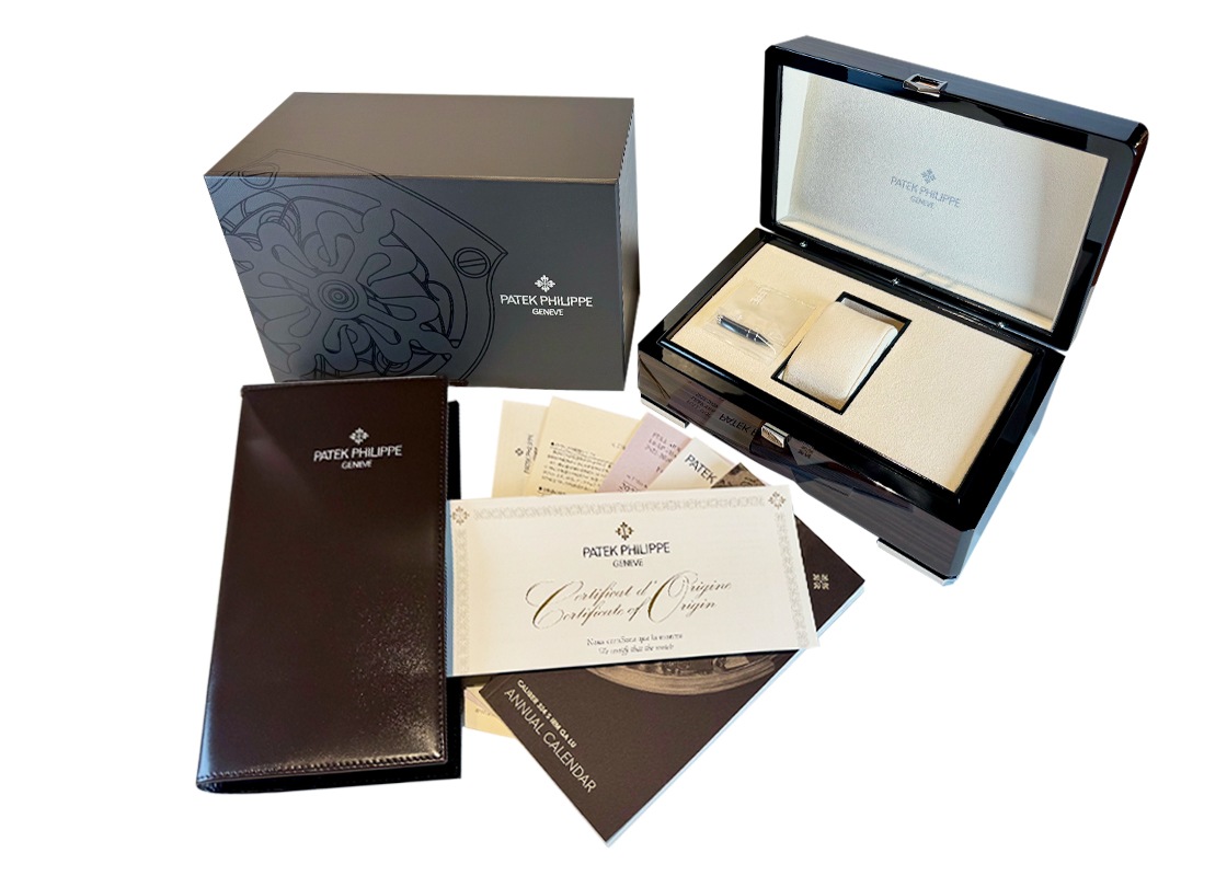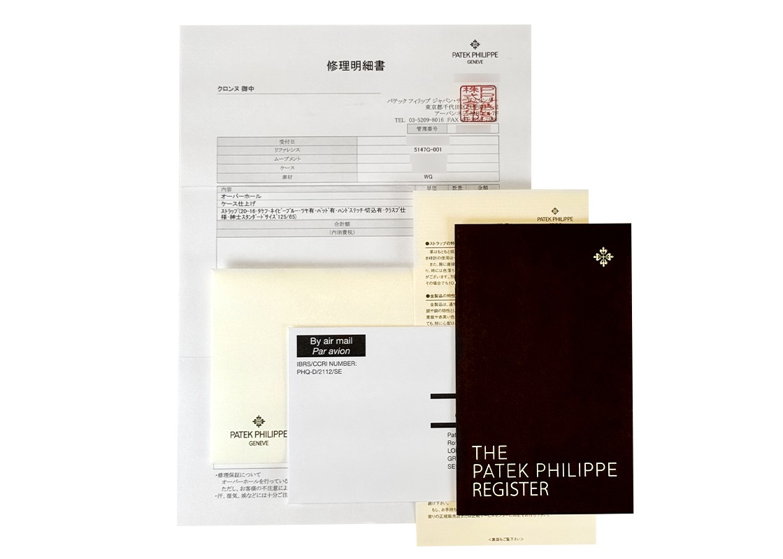 機械式時計の最高峰ブランド、パテック フィリップより、年次カレンダーとムーンフェイズを搭載した「5147G-001」が入荷いたしました。 年次カレンダーとは、30日・31日の月を自動で判別し、日付を自動調整する高機能カレンダー機構です。 調整が必要なのは2月末から3月1日にかけての年に一度のみという、優れた実用性を誇ります。 本機構は1996年にパテック フィリップが開発・特許取得した革新的コンプリケーションであり、同社を代表する技術のひとつとして高い評価を受けています。 本商品は、1998年に発表されたダイヤモンドベゼル仕様の年次カレンダー高級ラインRef.5037の後継機にあたるモデルです。 年次カレンダーの高い機能性はそのままに、華やかな意匠と洗練されたデザインを兼備。 実用性とラグジュアリーを両立した、パテック フィリップならではの一本に仕上がっています。 機械式時計の魅力とエレガンスを存分にご堪能いただける逸品です。 コンディションは、パテック フィリップジャパンにてオーバーホール(分解掃除)、外装仕上げ、ストラップ交換を行っており、万全の状態です。 付属品は、箱/保証書(2022年7月)/修理明細書(2026年2月)がございます。 メンテナンス完了後は、真空パック未開封の状態を保っており、どなたの手にも触れていないコンディションです。 また、パテックフィリップの修理保証が2028年2月まで有効なため、安心してご使用いただけます。 さらに詳しい内容を確認されたい方は、お気軽にお問い合せ下さい。 管理用:owq678