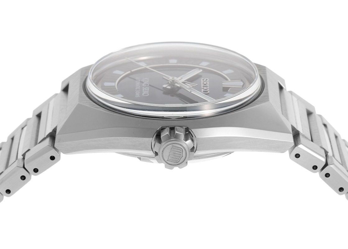 キングセイコーより、「バナック セイコーウオッチサロン専用モデル」が入荷いたしました。 キングセイコーは、1961年に誕生し、セイコーの中でも高い精度と美意識を追求した系譜として知られています。 その伝統を受け継ぎながら、現代的な解釈を加えて蘇ったのがバナックシリーズです。 こちらは、特別感のあるセイコーウオッチサロン専用モデル。 大胆なケースフォルムと、多面的に構成された造形が印象的な一本です。 風防ガラスはボックス型を採用しており、文字盤に刻まれた直線的なデザインにより、往年のバナックを想起させるカットガラスの雰囲気を巧みに表現しています。 深いブルーカラーの文字盤に、立体的なインデックスと針を組み合わせ、高い視認性と奥行きを実現。 クラシックと革新が交差する現在的な一本です。 ムーブメントには自動巻「キャリバー 8L45」を搭載し、パワーリザーブは約72時間です。 100mの防水性能も備えており、日常使いに十分な性能を確保しています。 さらに詳しい内容を確認されたい方は、お気軽にお問い合わせください。 管理用:owq770