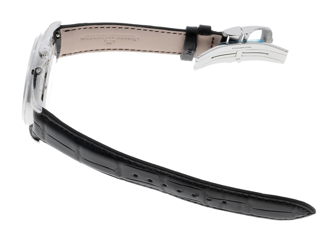 ジャガー・ルクルトはムーブメントにまつわる数々の世界記録を持ち、予てはパテックフィリップやオーデマピゲなど名だたるブランドへムーブメントの供給をしていたことでも有名です。 マスターウルトラスリムはその優れたムーブメントとムーンフェイズの美しさが際立つ、まさに技術と美の融合を目指すルクルトらしいコレクション。 2021年にリニューアルし、最新ムーブメントCal.925を搭載したこちらのモデルは9.3mmの厚さ。 どの検定よりも厳しいと言われる独自の“1000時間コントロールテスト”をクリアした高精度と信頼性、以前より大幅に伸びた約70時間のパワーリザーブはとても実用的です。 インデックスやポインターデイトも改良され視認性が向上、以前よりフラットな文字盤となっているのもリニューアル後の特徴。 シンプルで洗練されたクラシカルなドレスウォッチのデザインのなか、ムーンフェイズとポインターデイトが存在感を放ちます。 本物の夜空のように深いミッドナイトブルーの空。磨き上げられた月と星がとても繊細で美しく輝きます。 高度な技術とデザインが融合するジャガールクルトが誇る人気シリーズです。ぜひご覧ください。 さらに詳しい状態を確認されたい方は お問い合せください。 管理用:owq791
