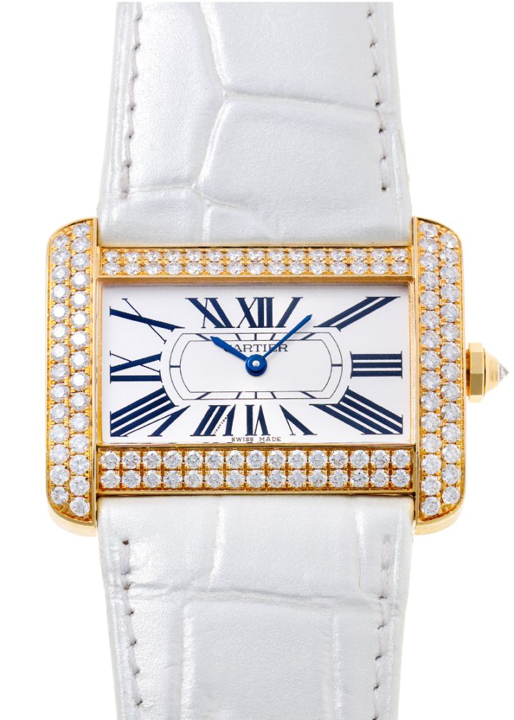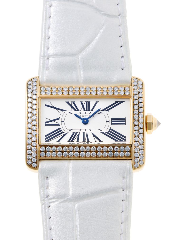 カルティエ - ミニ タンク ディヴァン ベゼルダイヤ | CARTIER | WA301036 | YG シルバー文字盤 クォーツ レザー | 中古